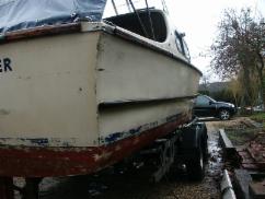 Build up of old antifoul very rough.gel coat covered in water stains and looking very dull
