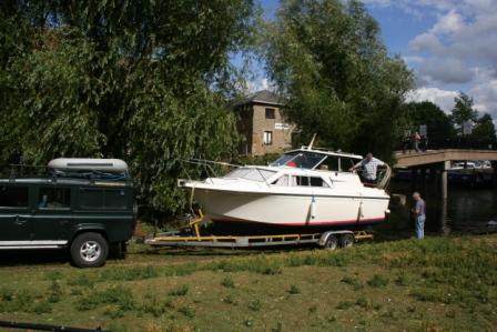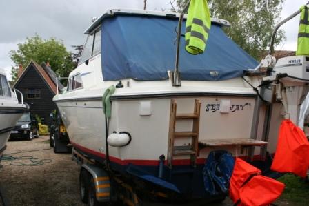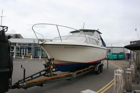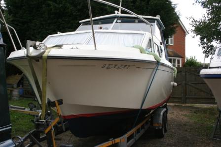 A Princess 25 in for hull clean and polish only, I was launcing her at Ely and customer would find it hard to do the hull whilst boat in water. He had just bourght her from Poole and i delivered her via my yard for one days work!